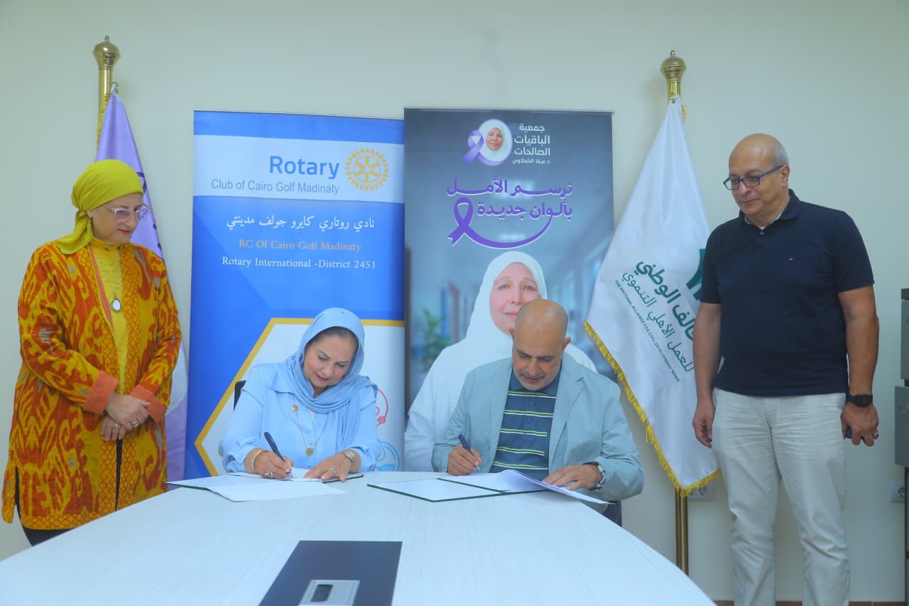 في إطار تعزيز الشراكات بين مؤسسات المجتمع المدني، وضمن جهودها كعضو فاعل فى التحالف الوطنى للعمل الاهلي التنموي وقّعت جمعية الباقيات الصالحات - لمؤسستها الدكتورة عبلة الكحلاوي- بروتوكول تعاون مع نادي روتاري كايرو جولف مدينتي، بهدف دعم ورعاية وعلاج مرضى ألزهايمر وكبار السن، وتوسيع نطاق الخدمات الصحية والاجتماعية المقدمة لهم ورفع الوعي المتجمعي بقضاياهم .